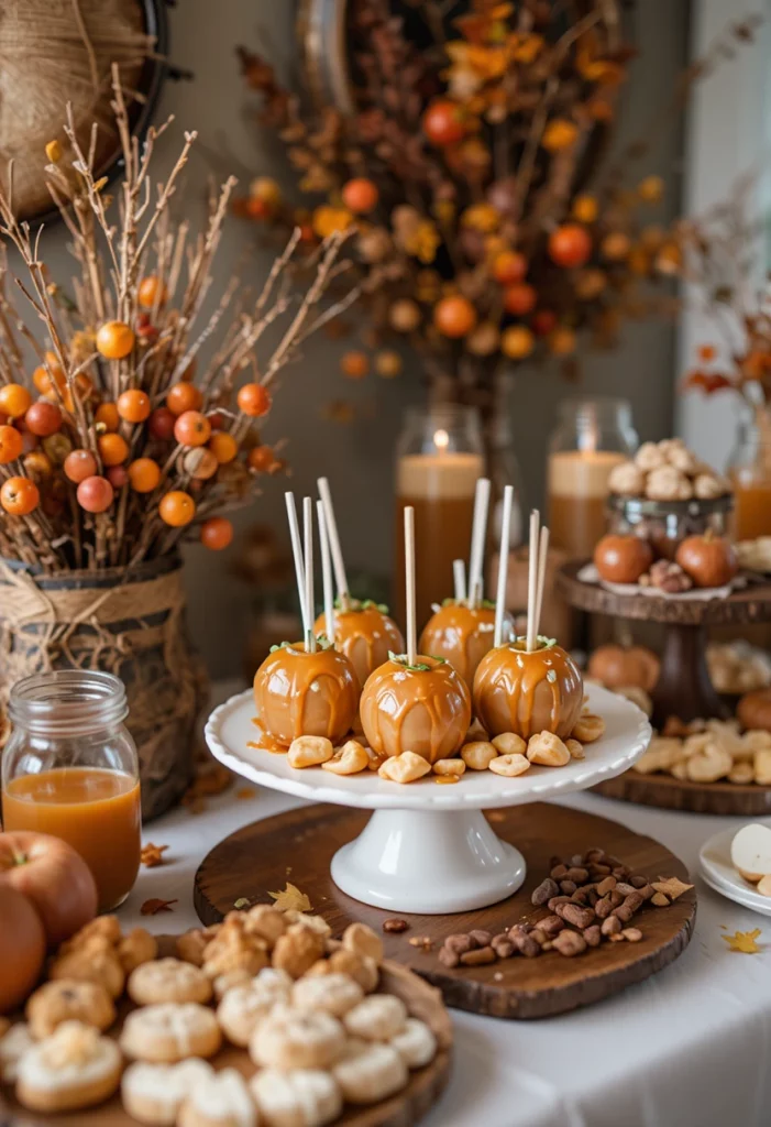 Create a DIY station where guests can dip apples in caramel and add toppings like nuts, chocolate chips, and sprinkles.