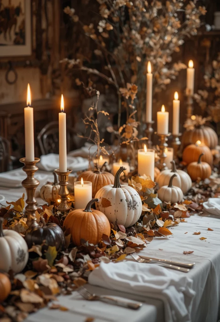 Add small pumpkins or candles for a cozy touch.