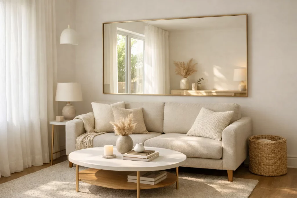 Among Living Room Decor Ideas for Small Apartments, mirrors are both stylish and practical.