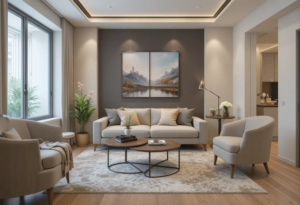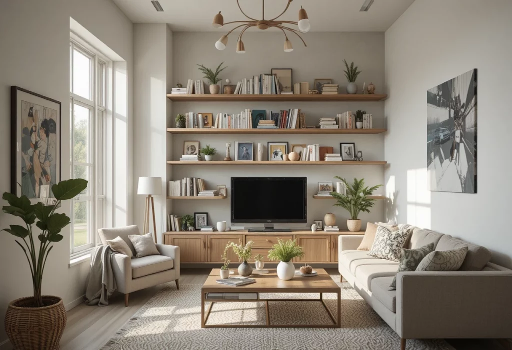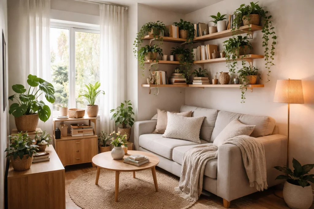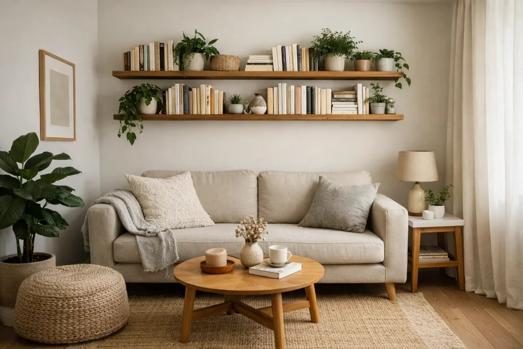 This approach maximizes limited space and fits perfectly into Living Room Decor Ideas for Small Apartments.